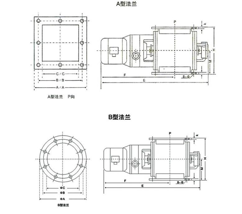 星型卸料器的法蘭接口主要為兩種:方口為A型 ,圓口為B型。也可以根據(jù)客戶要求定作長(zhǎng)方形及其他異形規(guī)格的卸灰閥。
